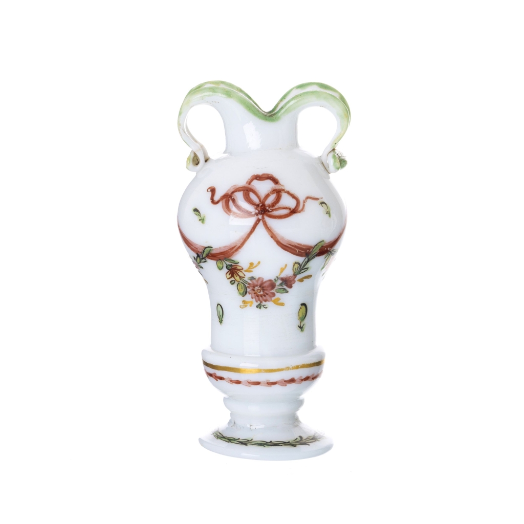 Boémia, Séc. XIX, decoração polícroma e ouro com decoração floral e vegetalista com grinaldas. Dim.:12 cm