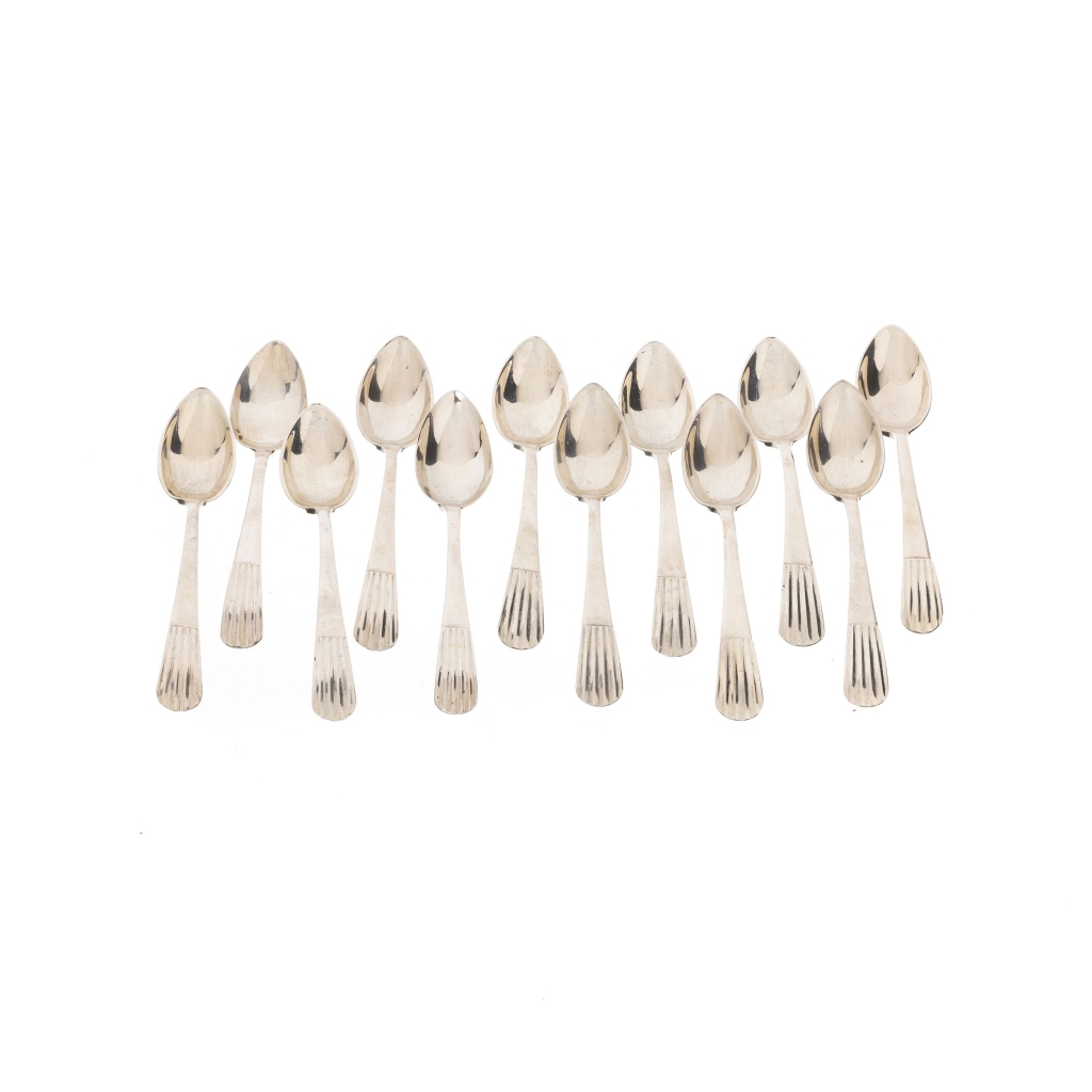 376. Doze colheres de chá em prata
