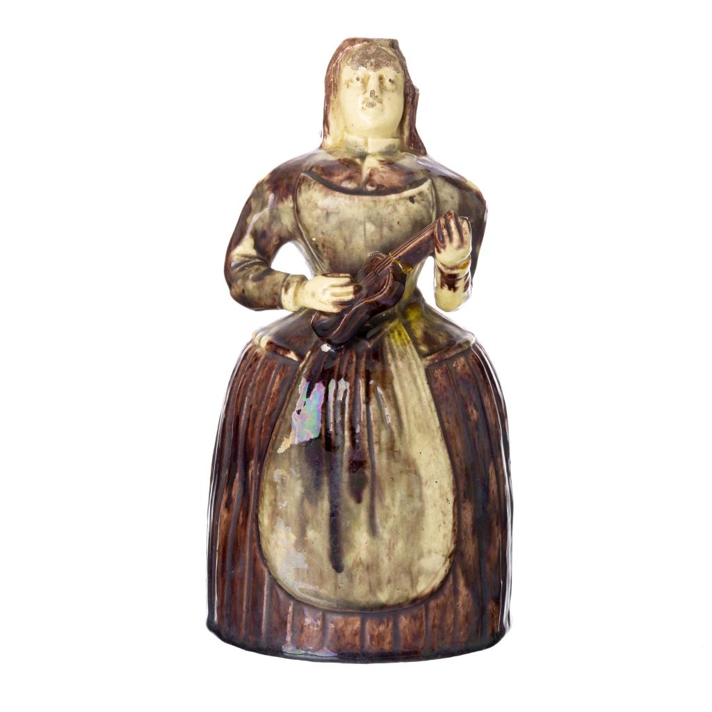 415. Garrafa figurativa 'mulher com viola' em faiança de Manuel Mafra