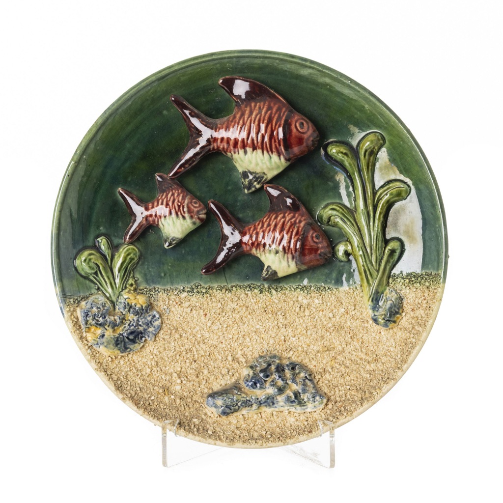 Faiança das Caldas da Rainha, fabrico de Alvaro José, c.1980, decoração polícroma vidrada com representação de peixes. Marcada.Dim.:21 cm