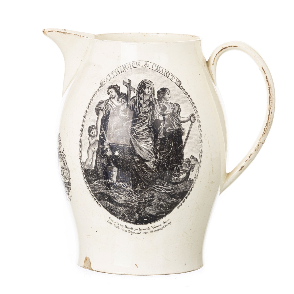 431. Caneca em faiança, 'Faith, Hope & Charity