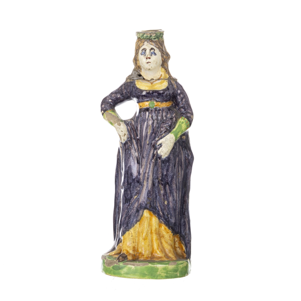 457. Garrafa 'figura feminina' em faiança portuguesa
