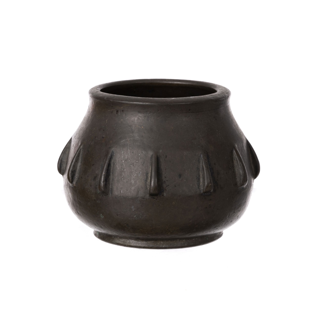 Cáucaso, Arménia ou Turquia Otomana, séc.XVI/XVII, bronze, forma bolbosa decorado com falanges. Sinais de uso. Dim.:8,5x10,5cm