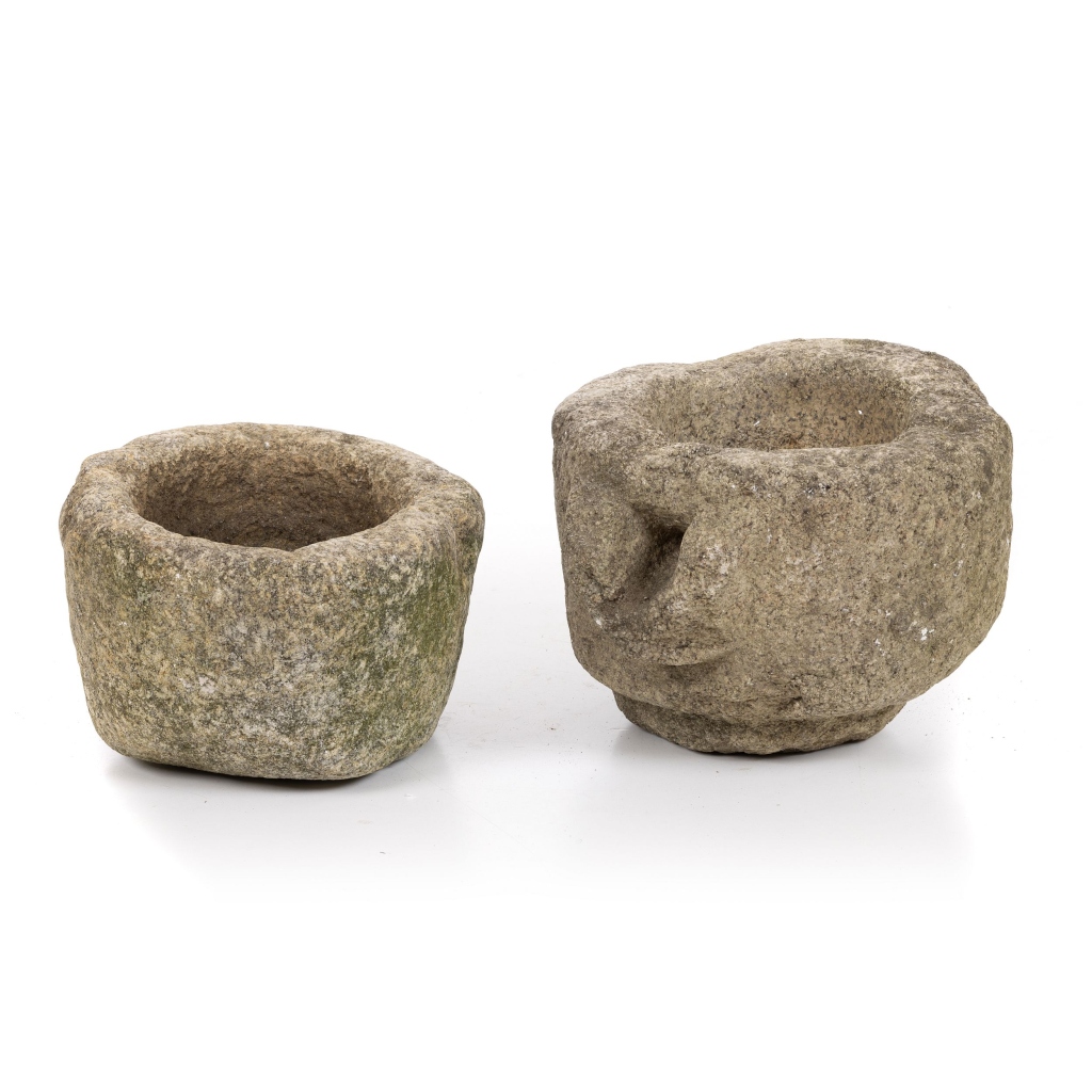 Portugal séc.XVIII/XIX, esculpidas em granito. Sinais de uso. Dim.:34x25 e 29x20 cm
