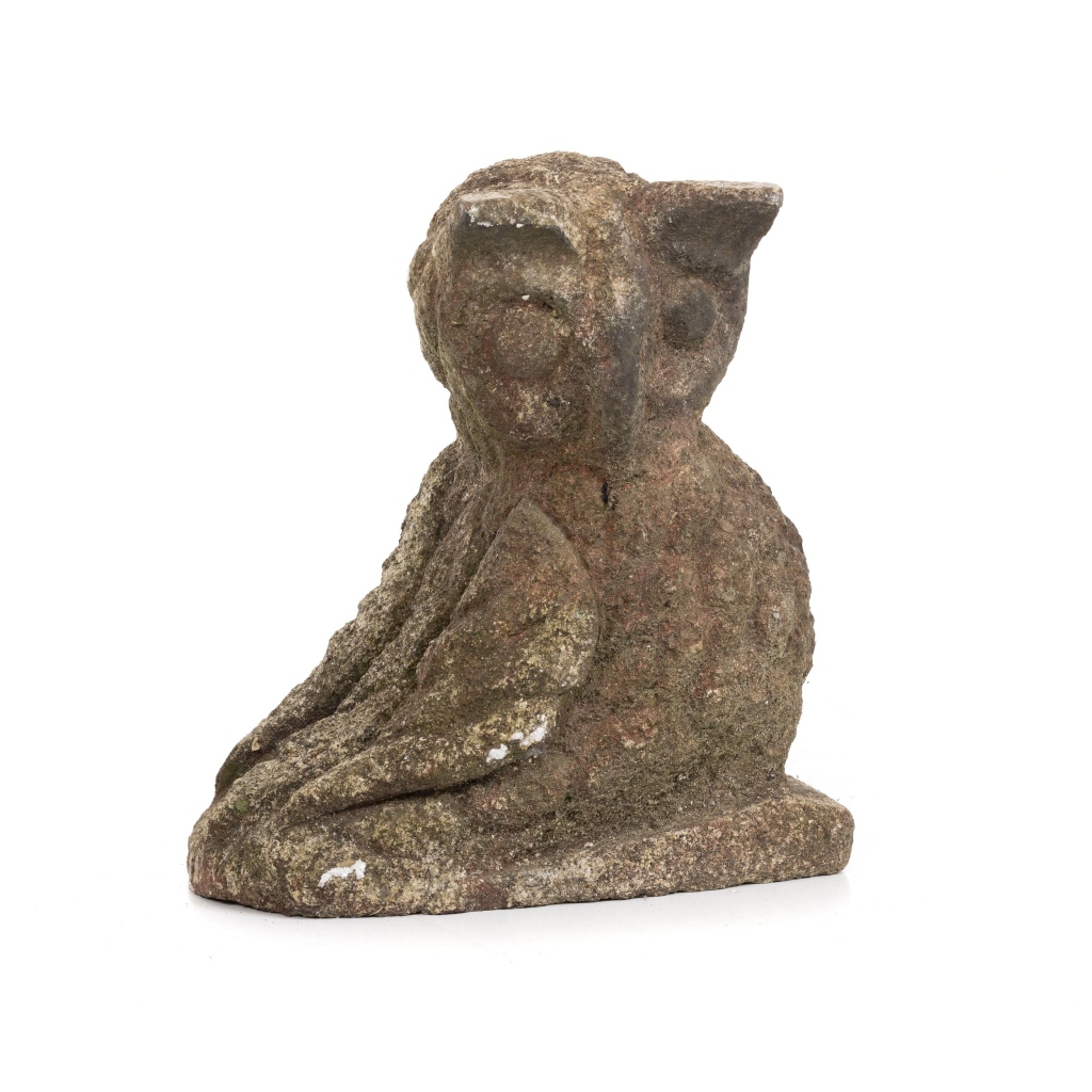 Portugal, séc.XX, escultura em granito, com vestígios de polícromia. Sinais de uso. Dim.: 25x23 cm.