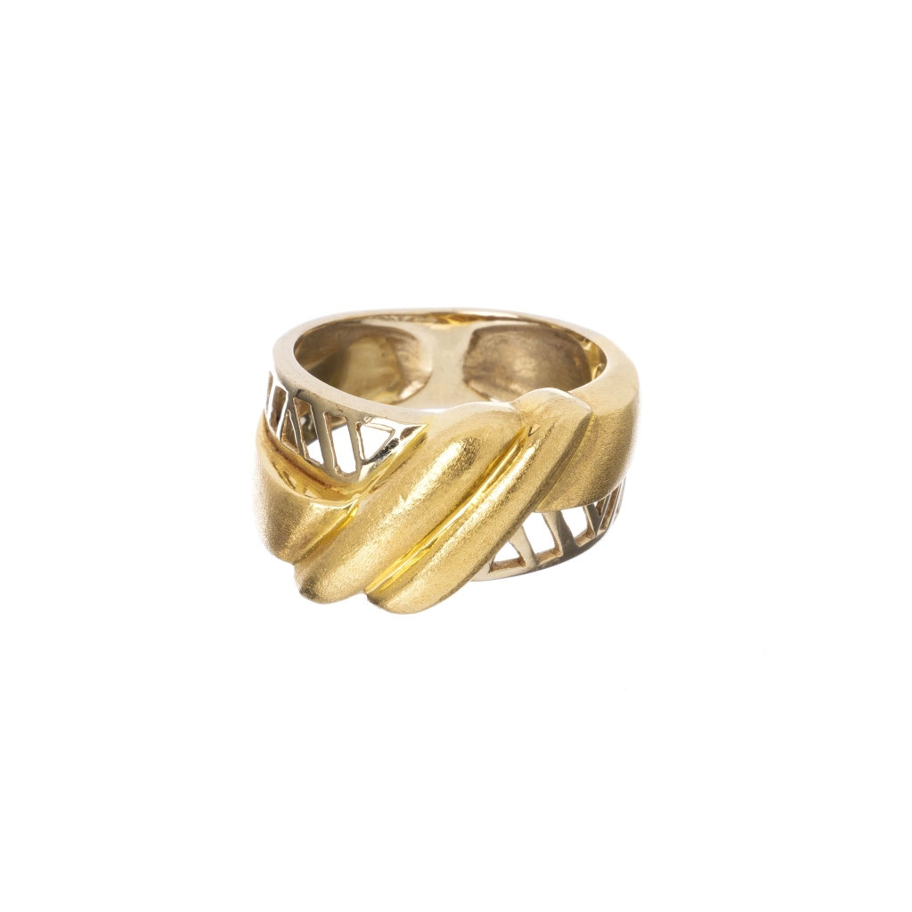 Ouro bicolor, contraste veado 800, vazado e escovado. Sinais de uso. Peso total:8,8g. Med.:16.
