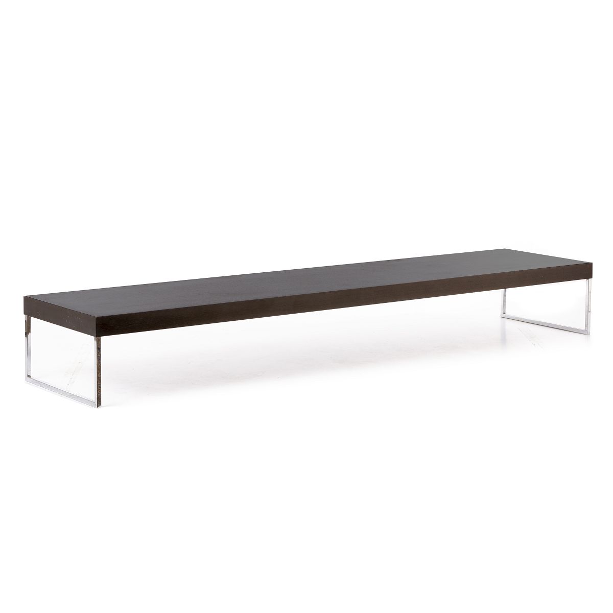 Itália c.1990, pés em metal cromado, tampo em folha de macassar. Sinais de uso. Dim.: 36x270x60cm.