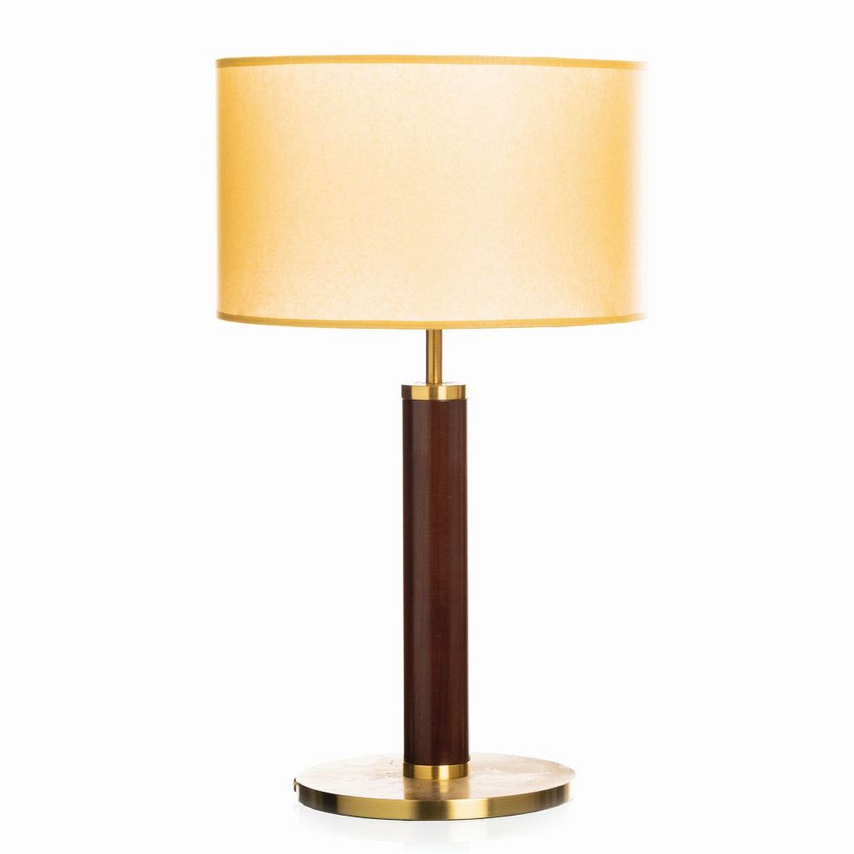 Portugal, c.1990, madeira de afizélia e latão. Electrificado. Dim.: 52 cm.