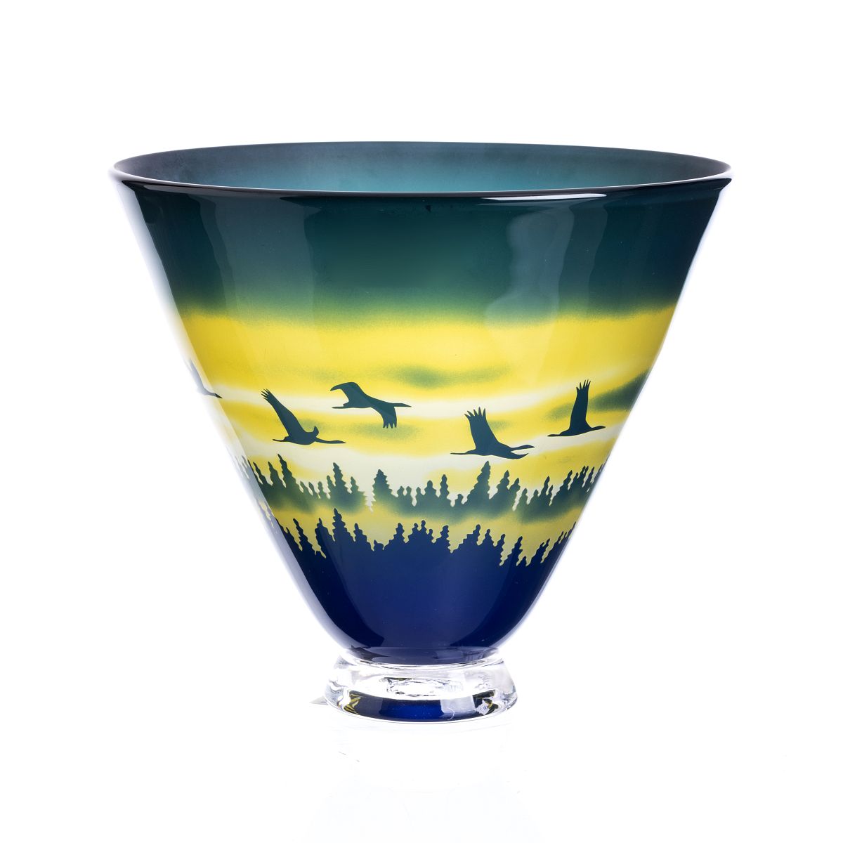 Dinamarca, jarra em vidro de Sjöhyttan tipo camafeu, assinado e datado de 1989. Dim.:23cm.