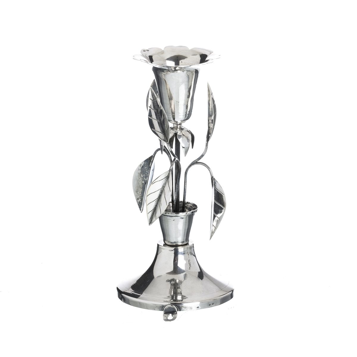 Prata portuguesa, contraste javali II 833 (1887-1937), decoração incisa e recortada, pé com folhagem. Sinais de uso. Peso aprox.:57,9g. Dim.:14,5cm.