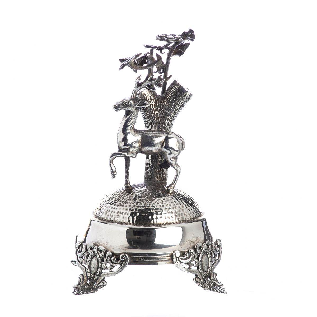 Prata portuguesa, contraste águia 835 (após 1985), decoração relevada e recortada representando veado. Sinais de uso. Peso aprox.:334g. Dim.:17cm.
