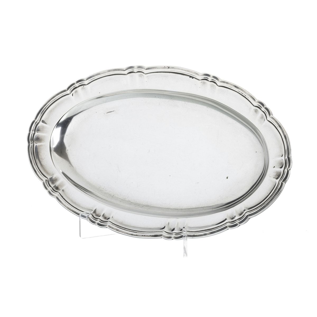 Prata portuguesa, contraste águia 833 1938-1984), oval de bordo gomado e relevado. Sinais de uso. Peso aprox.:446g. Dim.:33cm.