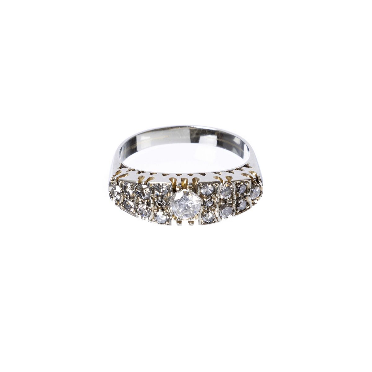 Ouro, com diamantes várias lapidações. Sinais de uso. Peso total:7,0g. Med.: 18,5. Ao abrigo do Decreto-Lei nº120/2017.