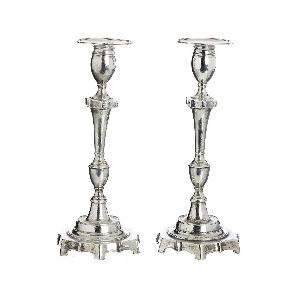 Prata portuguesa, contraste do Lisboa (1810-1822), marca de ourives não identificada, forma de balústre, com base recortada. Sinais de uso. Peso aprox.:787g. Dim.:23cm.