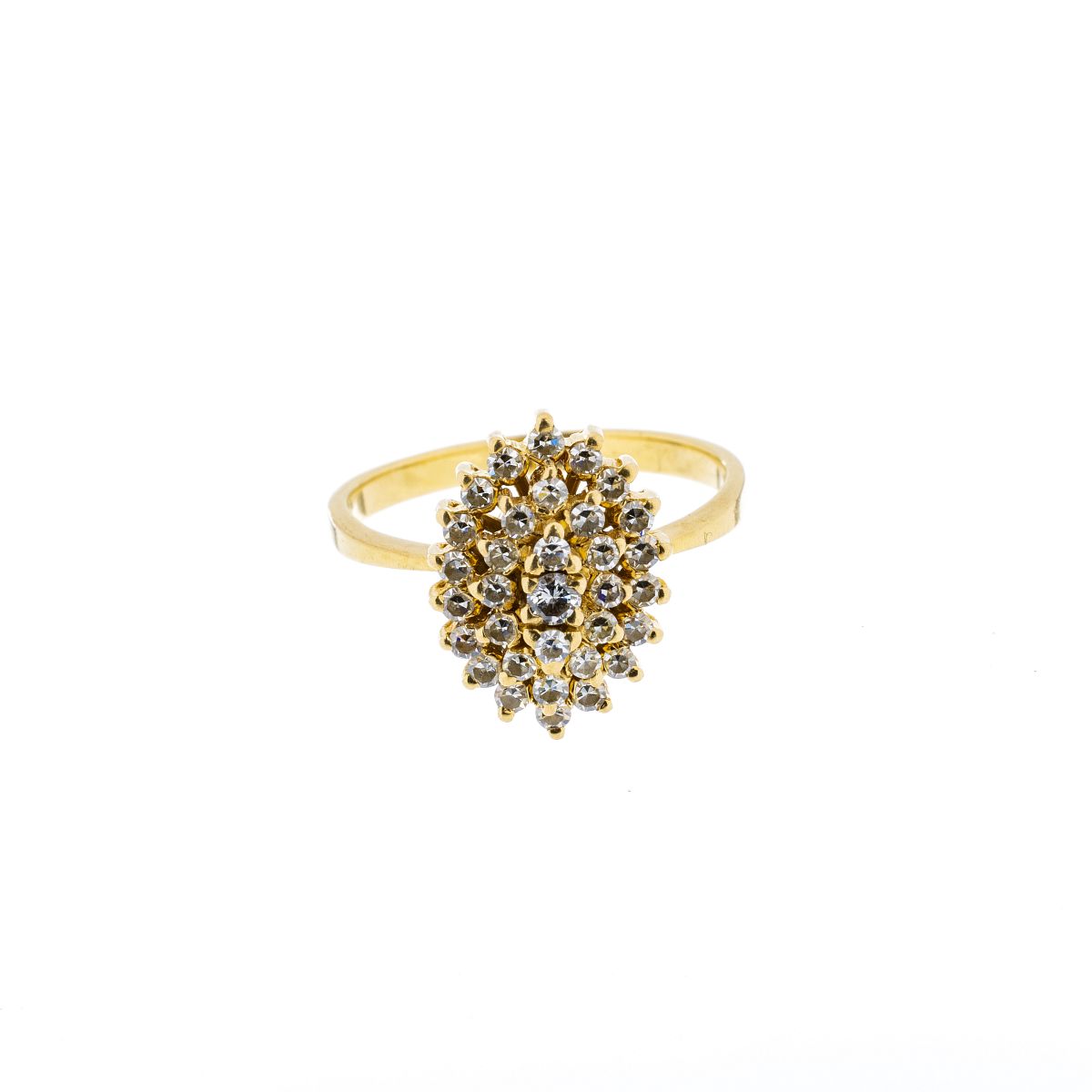 Ouro amarelo, contrastes veado 800 e galo, cravejado com um diamantes brilhantes brilhante redondo e 32 diamantes lapidação 8/8 redondo. Sinais de uso. Peso total:3,9g. Med.:11,5.