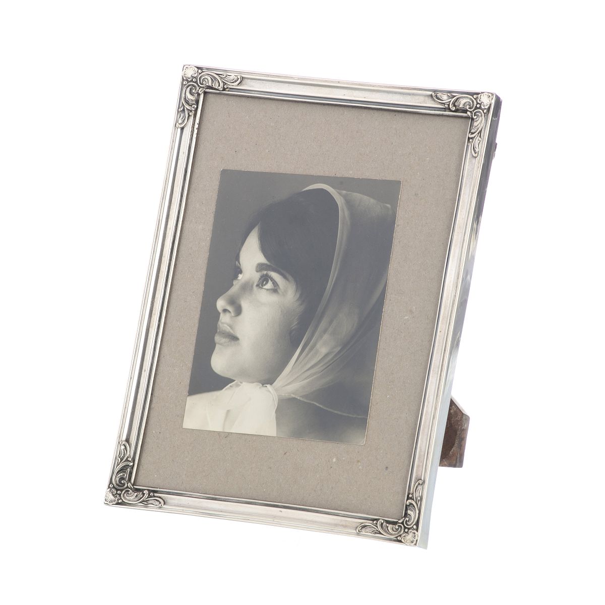 Moldura em prata portuguesa, contraste águia 833 (1938-1984), decoração relevada com volutas e concheados. Sinais de uso. Peso aprox.:66g. Dim.interior:17,8x12,8cm, exterior:20x15cm.