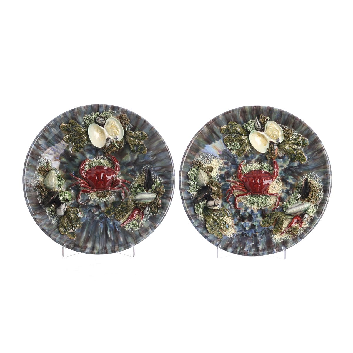 430. Par de pratos 'mariscos' em faiança das Caldas