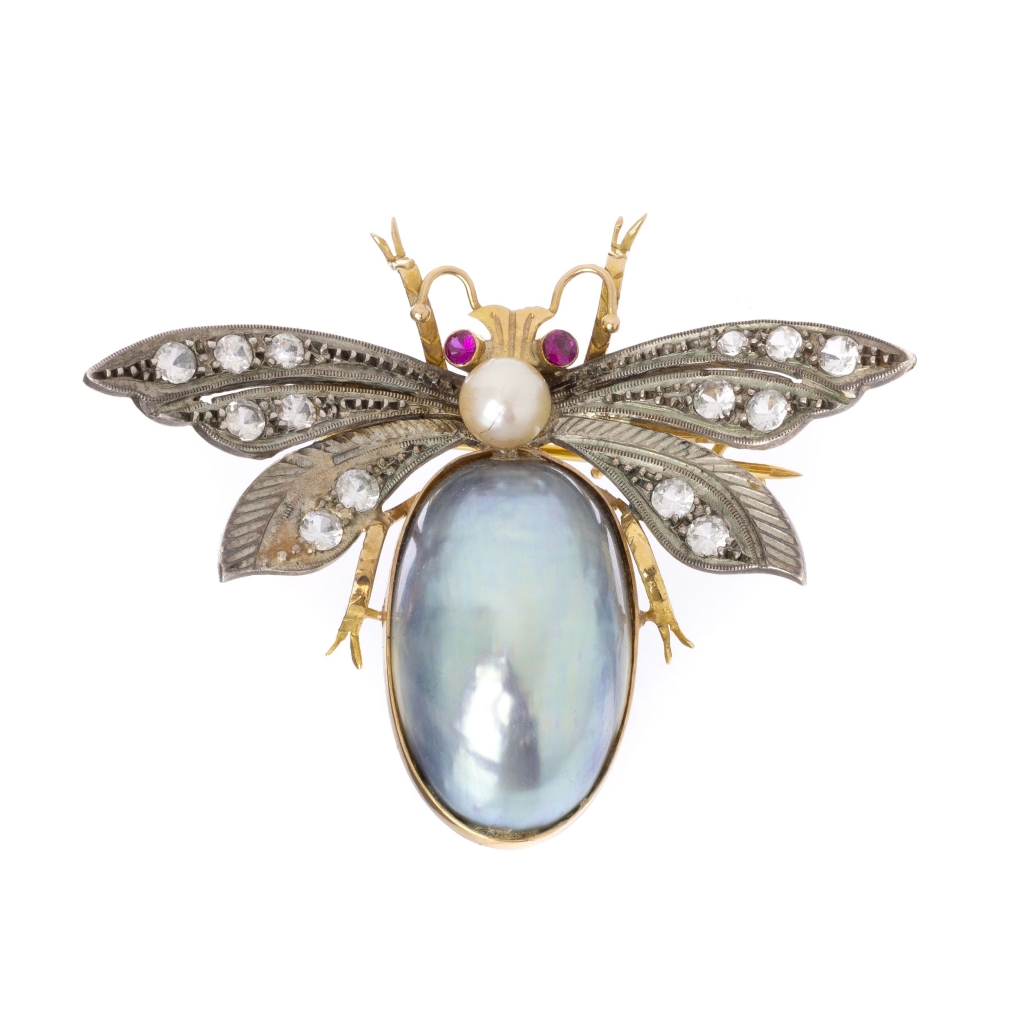 Ouro amarelo e prata com pérolas de cultura e pedras. Peso total: 12,1g. Ao abrigo do Decreto-Lei nº120/2017.