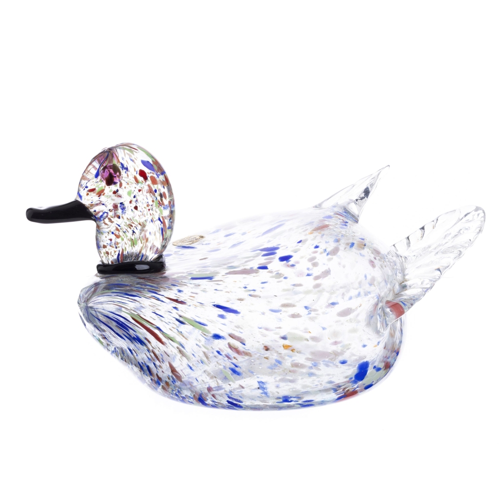 Itália, c. 1960-70, escultura em vidro Murano, com decoração polícroma de murrina e inclusões a ouro. Sinais de uso. Dim.:30 cm