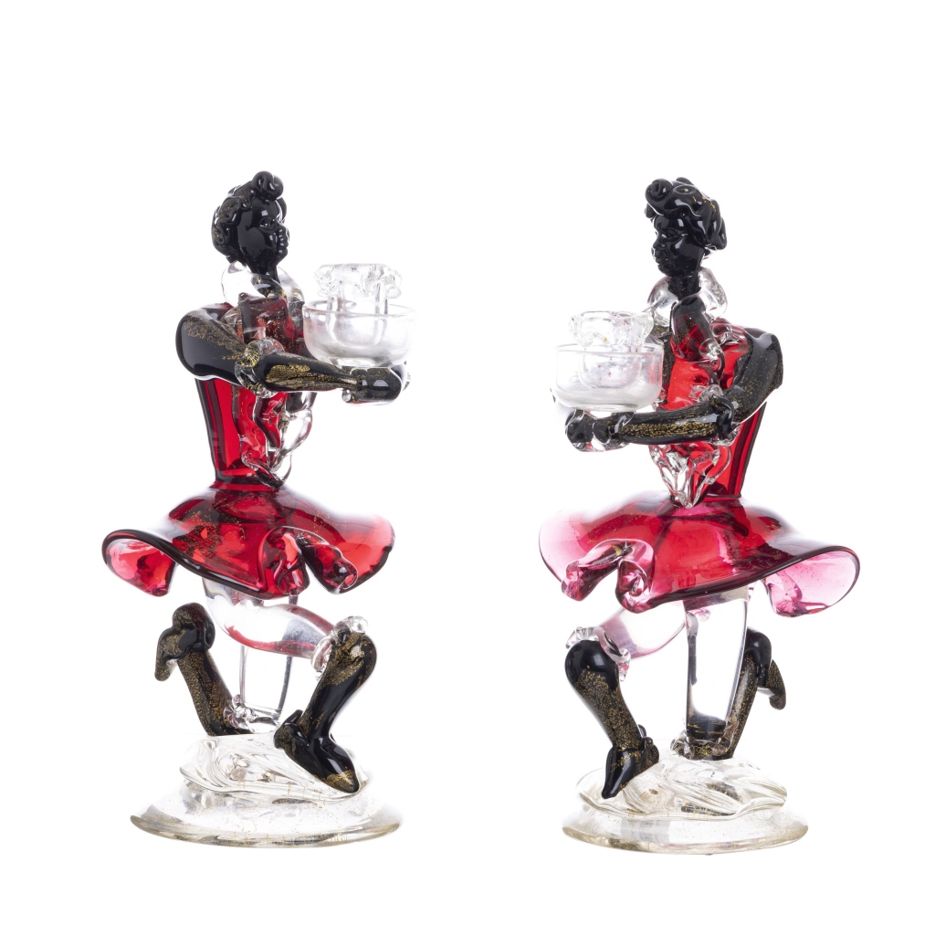 316. MURANO - Par de castiçais 'mouriscos' em vidro