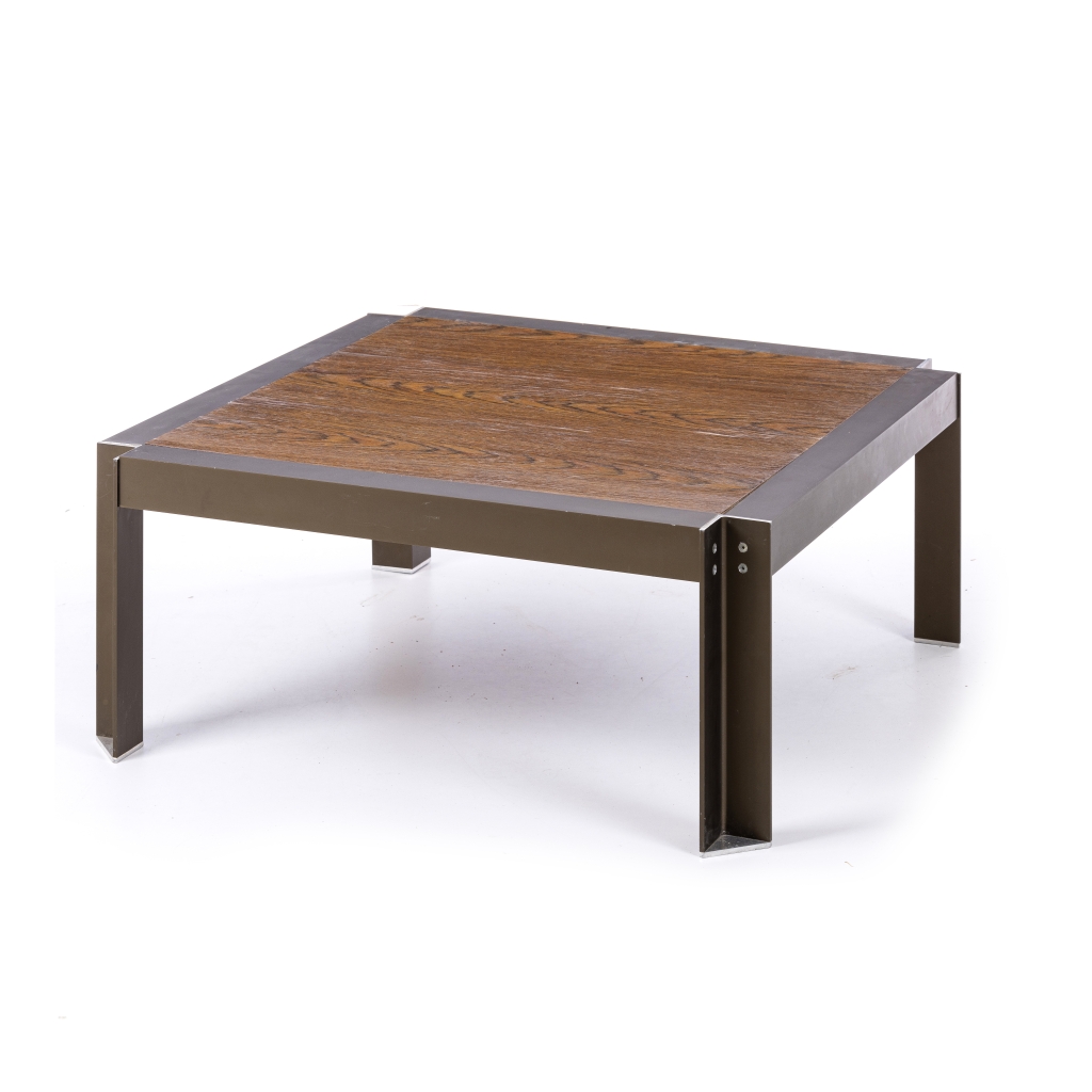 França, c.1970, desenhada para Equipement Fonctionnel de l'Habitation" (E.F.A). Estrutura em alumínio lacado, tampo em carvalho. Sinais de uso. Dim.: 36x86x86 cm.