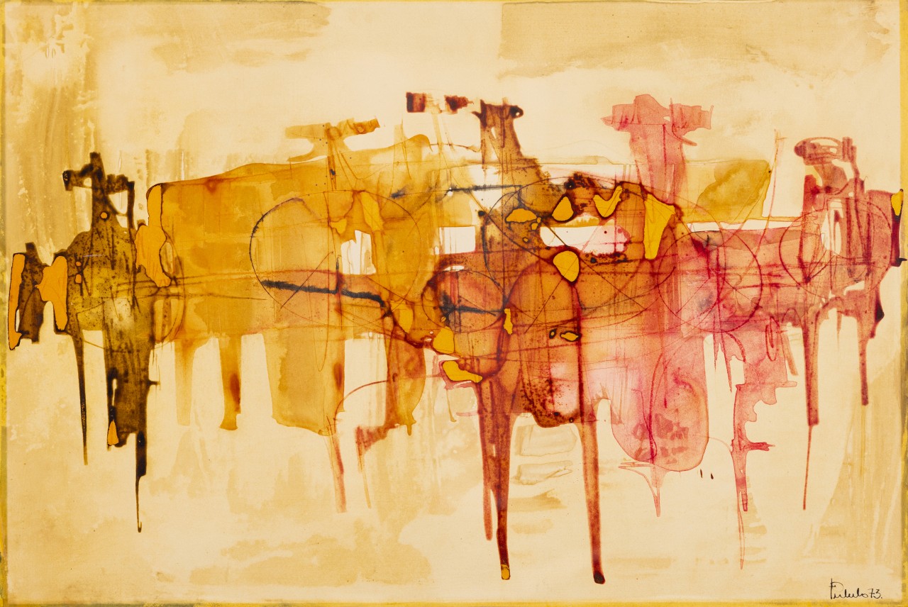 Técnica mista sobre papel, assinado e datado de 1973. Dim.: 37x54 cm