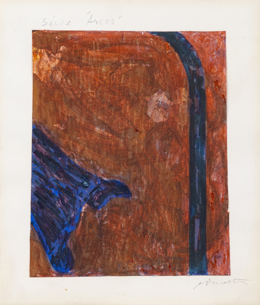 Guache e pastel sobre papel, assinado, datável de 1988/1989, autenticado no verso pela esposa do artista, Miriam Rewald Dacosta, em 20 de Outubro de 2001. Dim.:21x28cm.