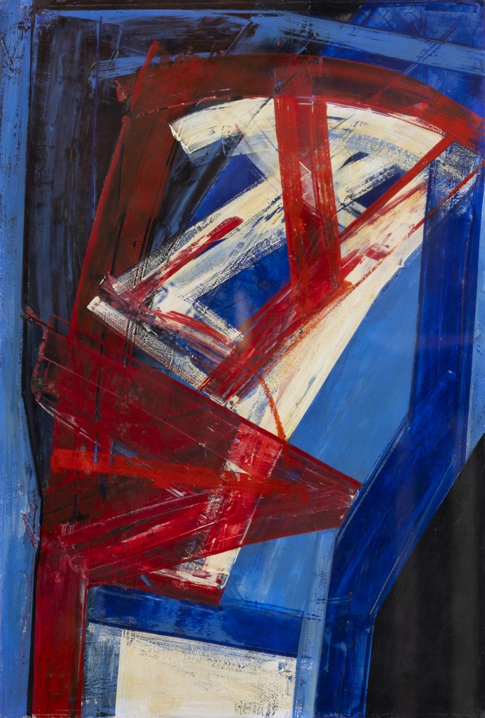 Acílico sobre papel, assinado e datado 1985 e indicação de título no verso. Dim.:50x44,5cm.