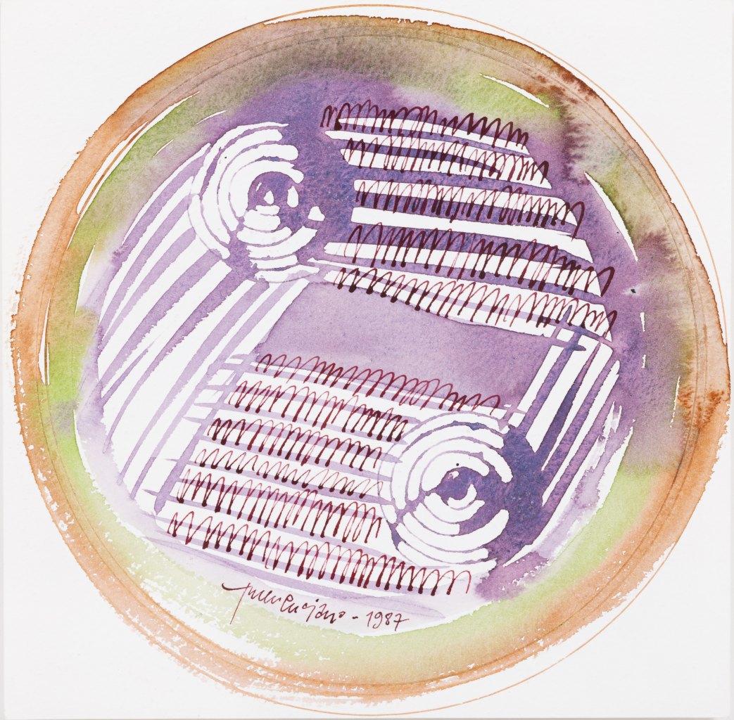 Técnica mista sobre papel, assinado e datado de 1987. Dim.: 20x20 cm.