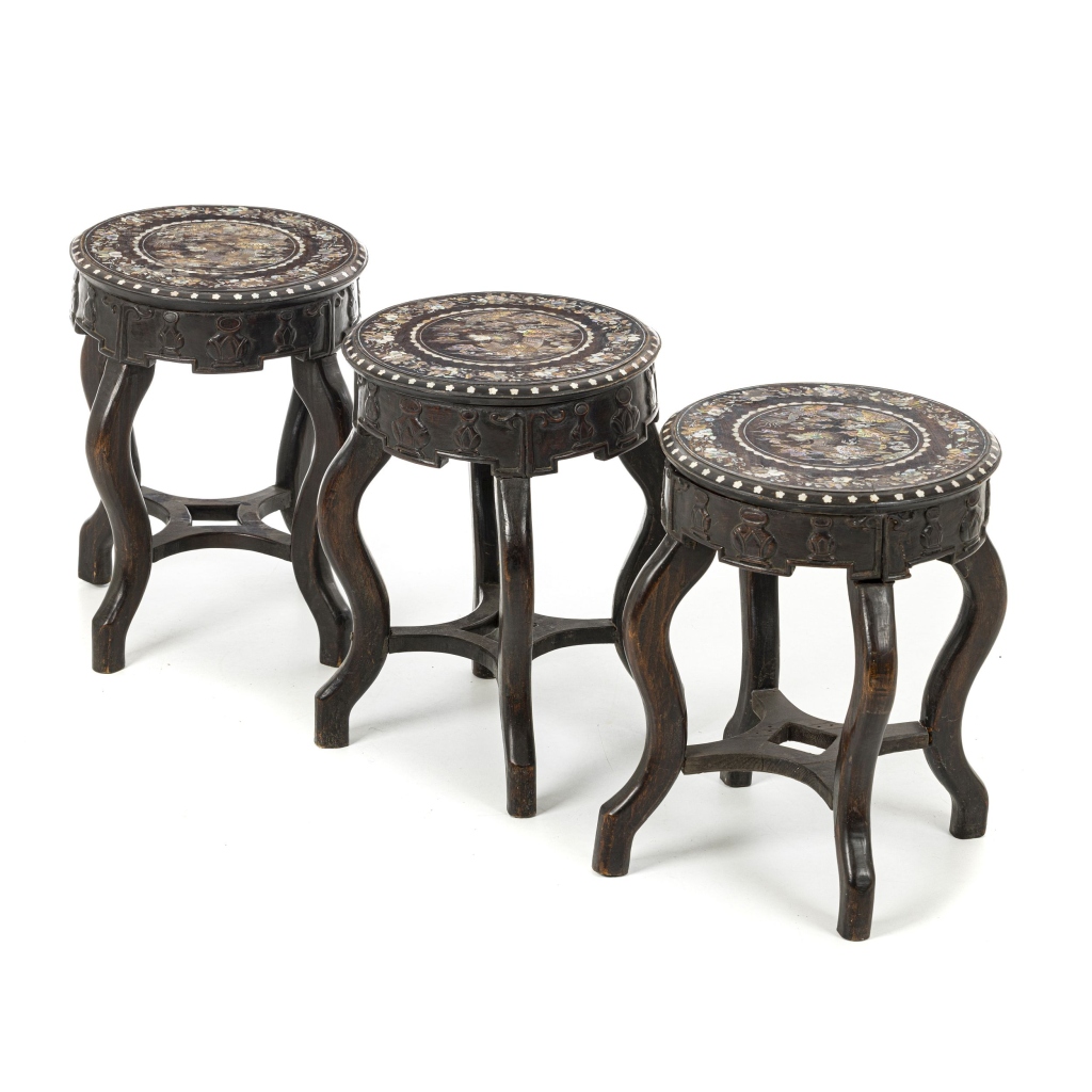 China, Guangxu, em tamarindo com embutidos em madrepérola, reservas com dragões e flores. Sinais de uso. Dim.:46x40cm.