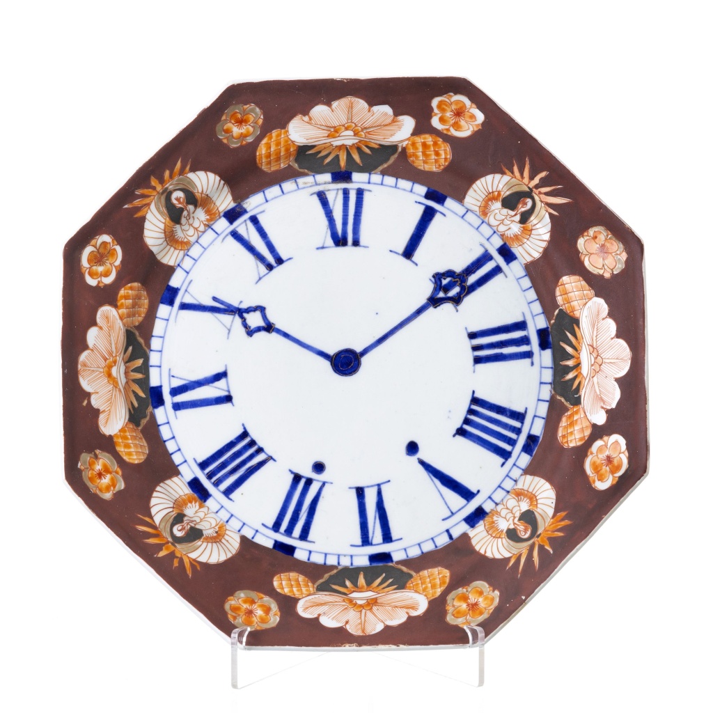 Japão, Meiji, porcelana moldada, decoração policroma e rouge de fer com representação de relógio ao centro.
