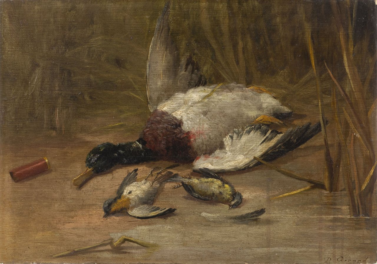 637. ESCOLA FRANCESA, Séc.XIX - 'Natureza morta com pato e pardais'