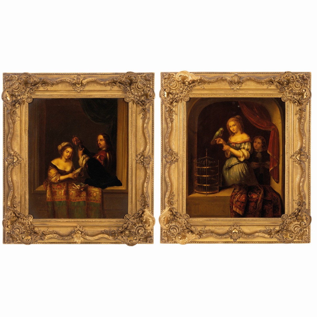 638. ESCOLA FRANCESA, Séc.XIX - Par de pinturas de interior