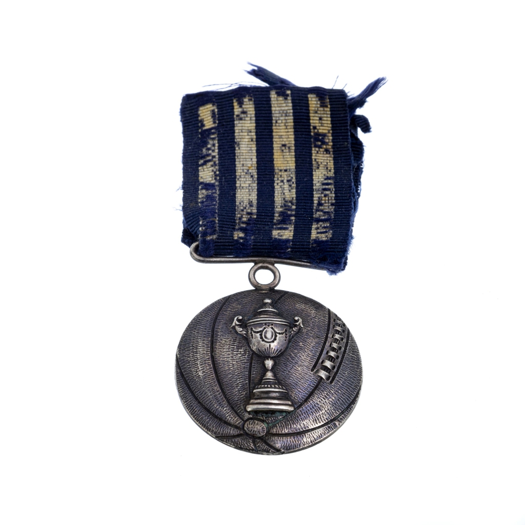 Prata portuguesa cinzelada, inscrições no verso 'Football Club do Porto, Taça José Monteiro da Costa, 1912=12º Campeonato do Norte do País'. Sinais de uso. Peso aprox.:13,2g. Dim.:3,4cm. Ao abrigo DL 120/2017.