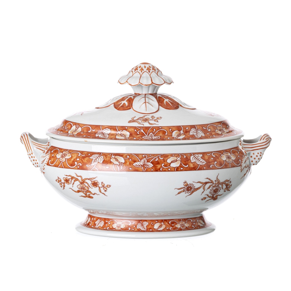Porcelana moldada da Vista Alegre, decoração a rouge de fer de motivos florais. Marcada. Dim.:27cm.