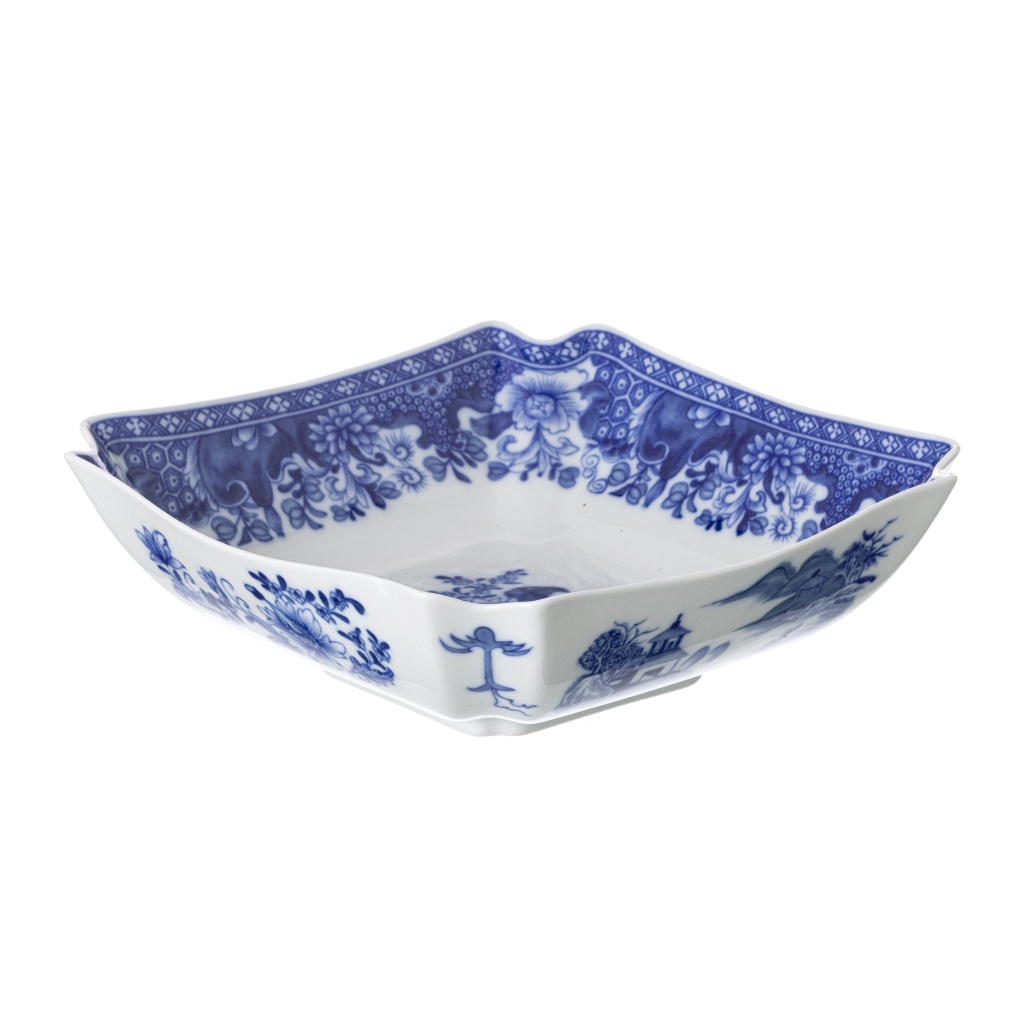 Porcelana moldada e vidrada da Vista Alegre 'Mottahedeh', decoração a azul e branco, reprodução de porcelana de exportação do séc.XVIII, para o mercado Inglês. Marca 1980-1992. Pequena esbeiçadela. Dim.:22,5cm.