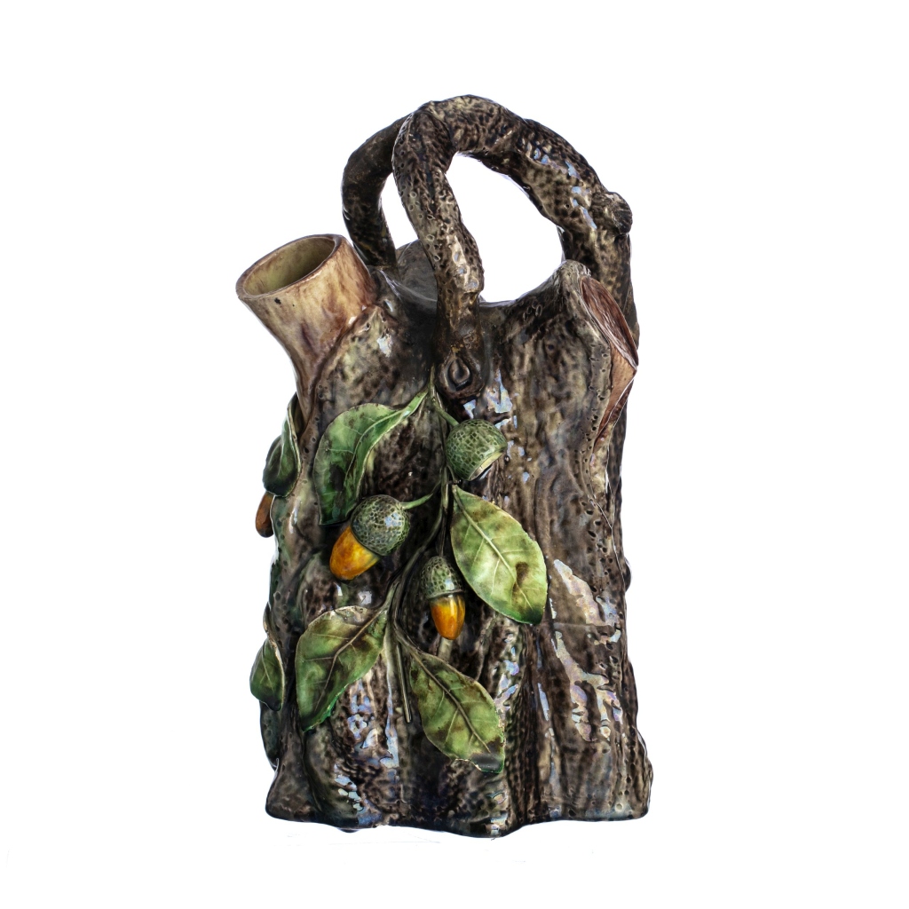 Faiança das Caldas da Rainha, fabrico de Jose A. Cunha, séc.XIX, decoração polícroma em relevo. Pequenas falhas. Dim.: 26 cm.