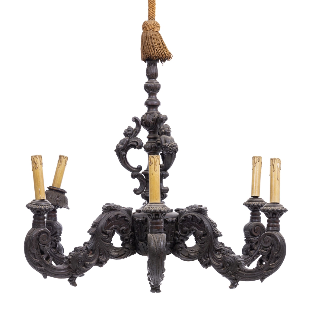 572. Candeeiro de tecto de seis braços Neo-renascença em talha