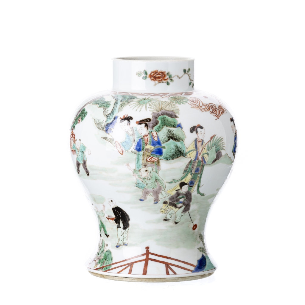 China, séc.XX, porcelana decorada com esmaltes da familia verde e rouge de fer, Marca na base, pequenos restauros. Dim:33x25cm
