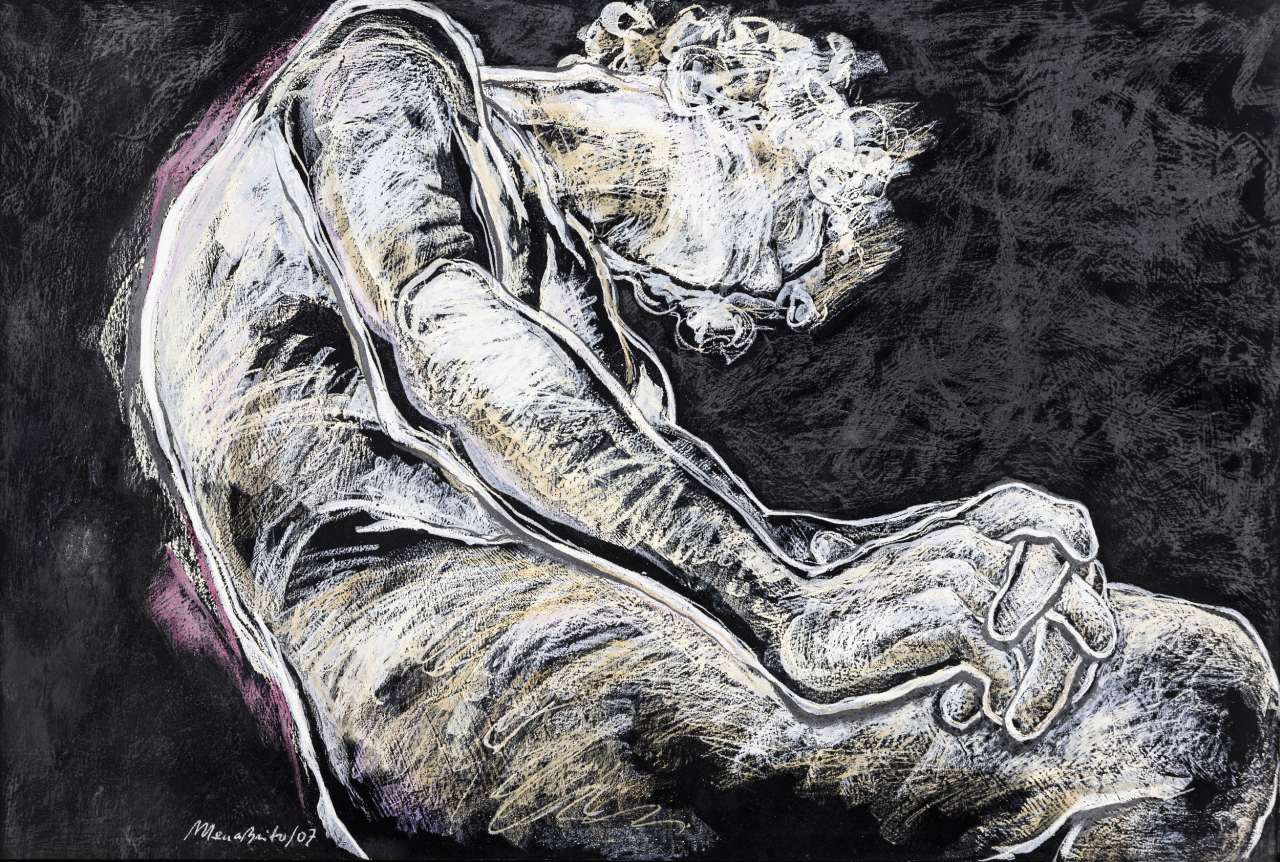 Pastel de óleo e grafite de Kline, assinado e datado de 2007. Dim.: 60.5x92 cm