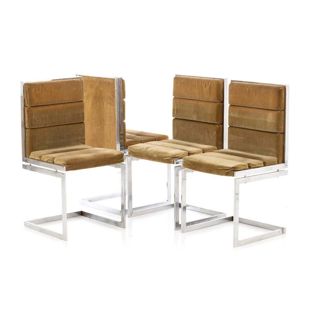 Itália, c.1970, em aço cromado, estofo em tecido camurça castanho. Sinais de uso. Dim.:91x46x43cm.
