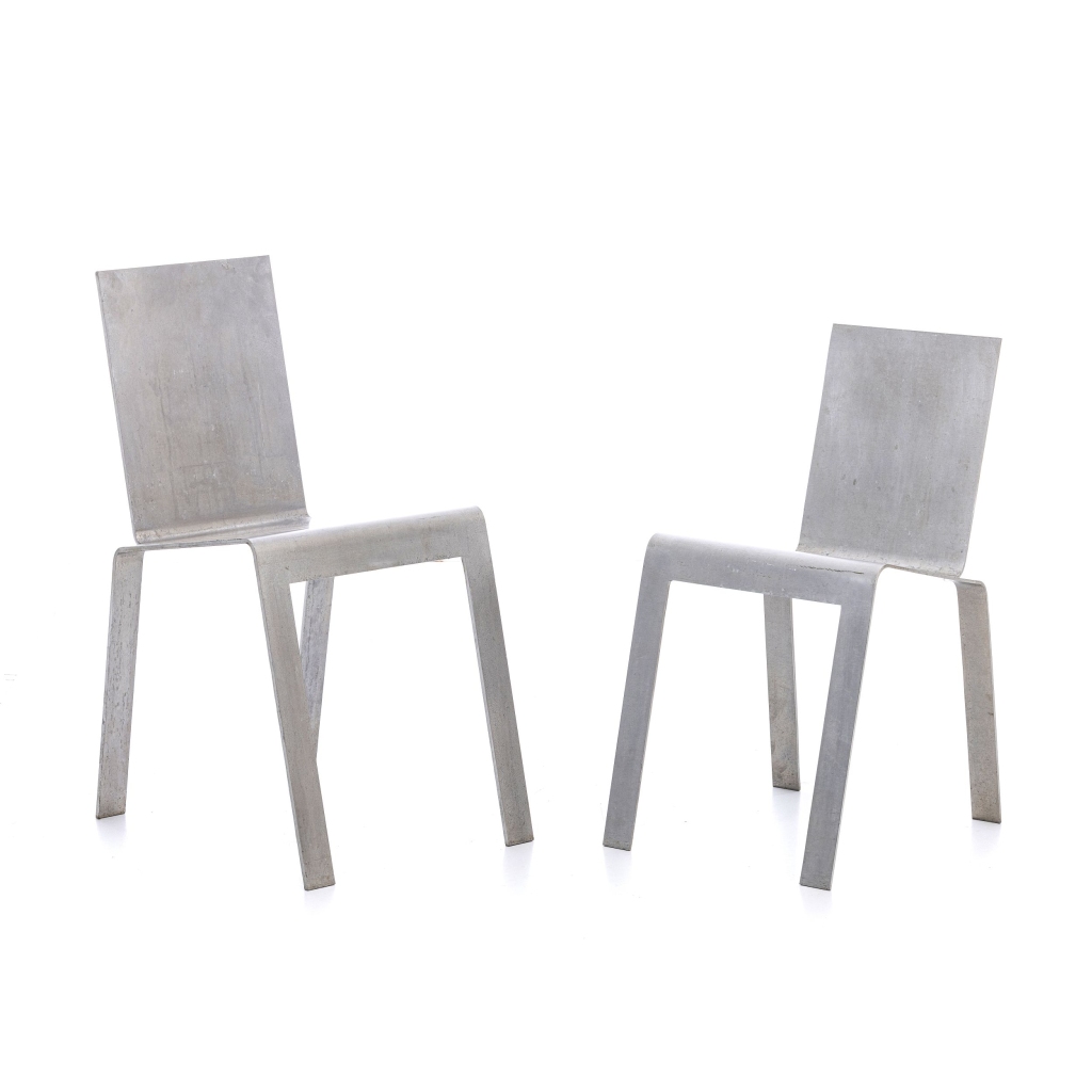 227. TRABALHO EUROPEU, c.1980 - Par de cadeiras pós-modernas em aço