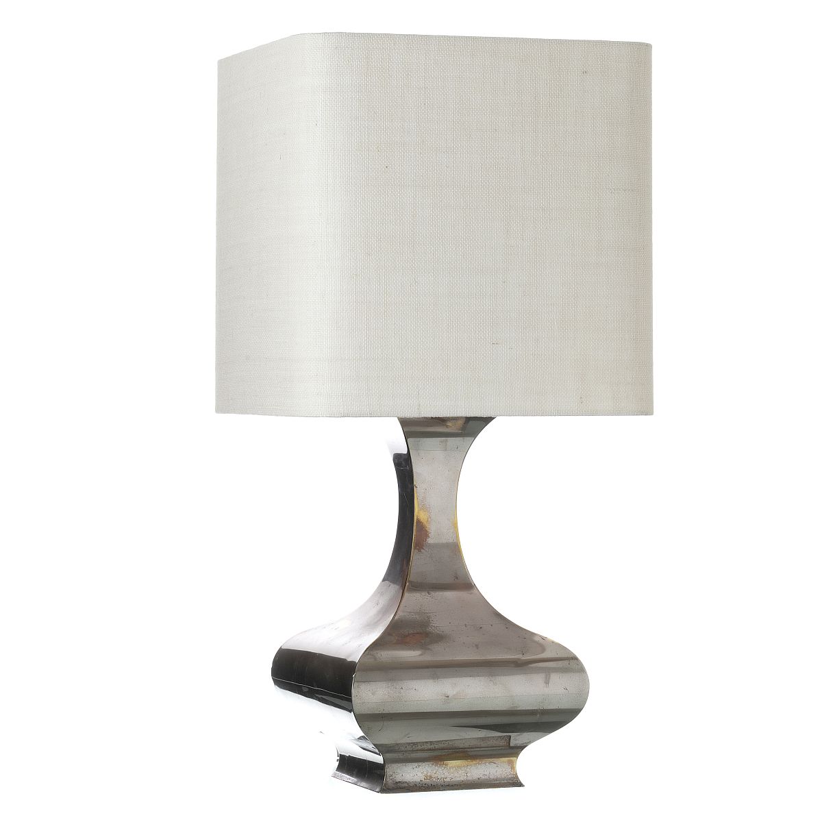 França, c.1970, em metal cromado, abat jour em tecido. Sinais de uso. Produzido para as villas de Príncipe Abdullah, Arábia Saudita. Vd. Suzanne Demisch - 'Maria Pergay - Complete Works 1957-2010' page 93. Electrificado. Dim. Total: 81cm.