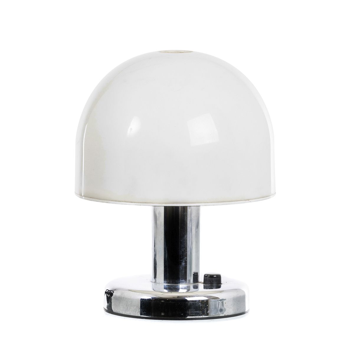 Itália c.1970, em acrílico branco e metal cromado. Electrificado. Sinais de uso. Dim.: 23cm.