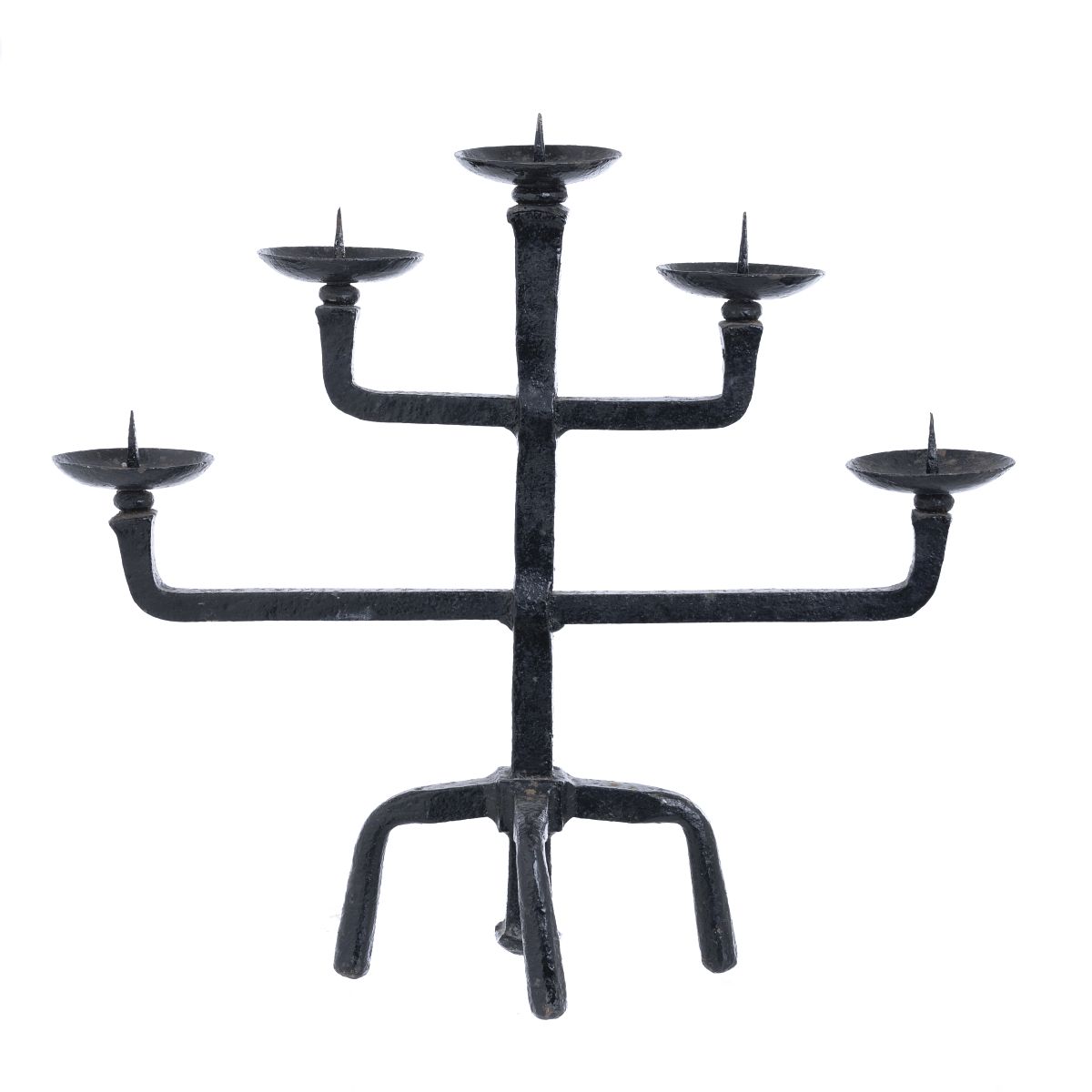 França, c.1960, castiçal em ferro forjado batido e lacado. Sinais de uso. Dim.: 42 cm.