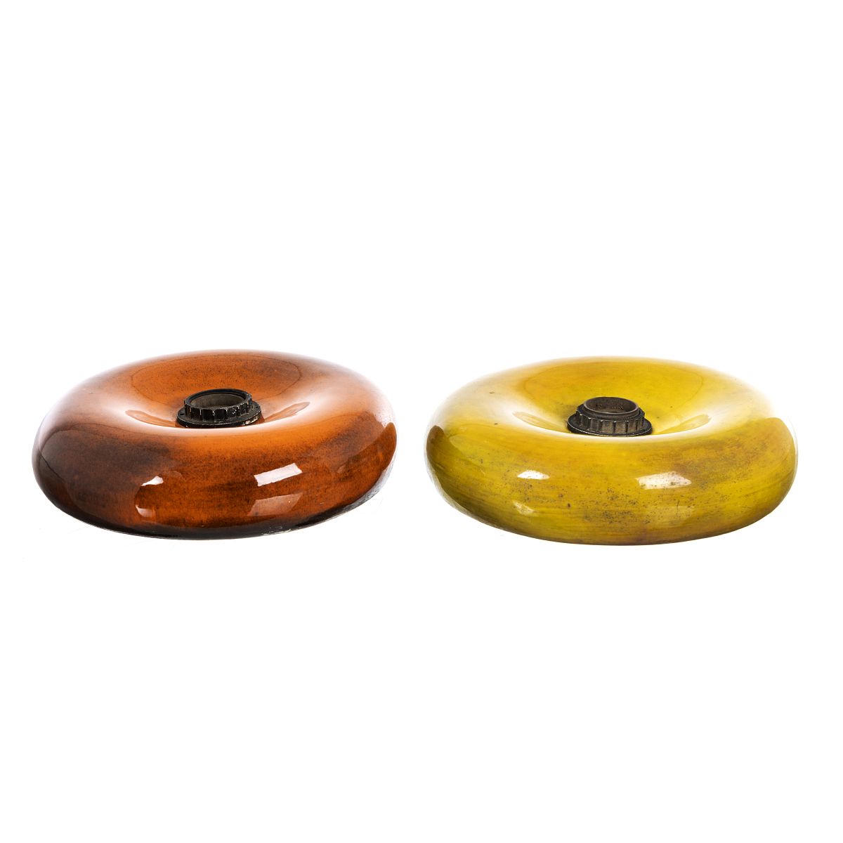 161. TRABALHO FRANCÊS, c.1960 - Par de candeeiros de mesa / apliques cerâmicos