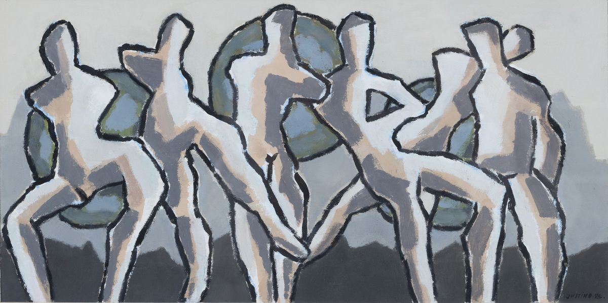 Óleo sobre papel, assinado e datado de 1995. Dim.: 20x39,5cm.