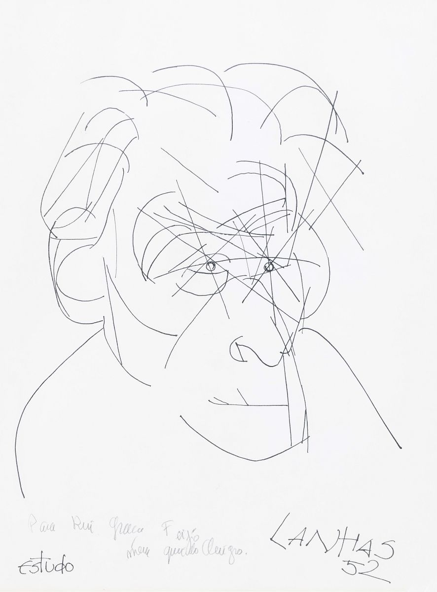 Tinta da China sobre papel, assinado e datado de 1952, com dedicatória. Dim.: 42x32,5 cm.