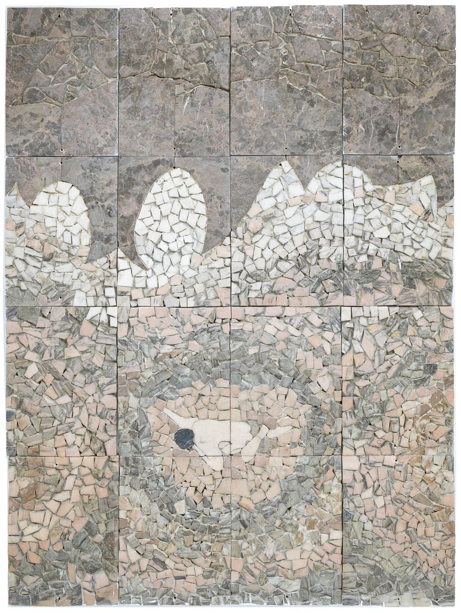 Lagos, c.1980. Mosaico em mármore e outras pedras formado por 16 módulos. Pequenos defeitos. Adquirido directamente ao Artista, tendo permanecido desde essa data na mesma colecção. Dim. Aprox.: 160x120cm.