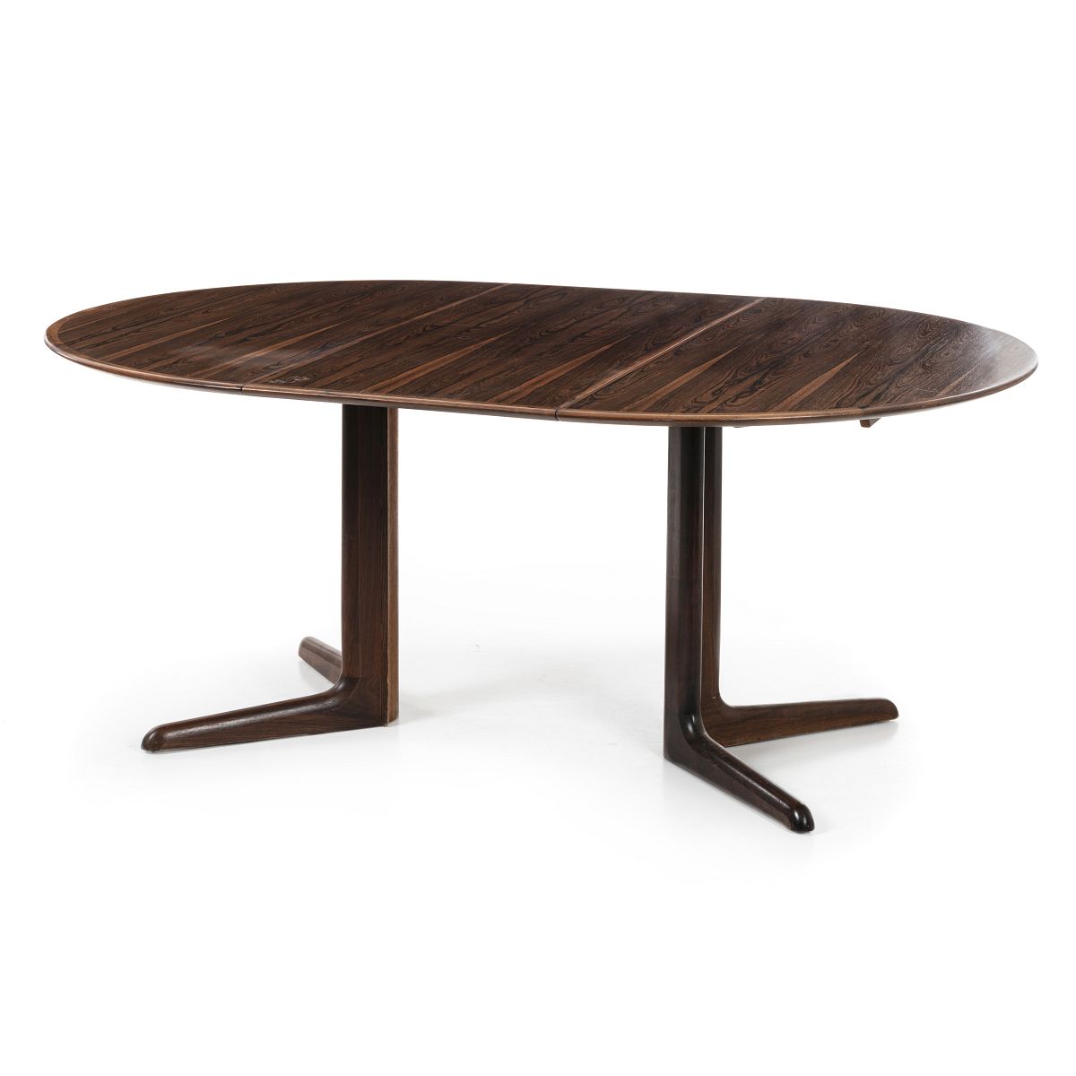 Dinamarca, c.1960, pau-santo, forma circular com duas tábuas de acrescento. Sinais de uso. Dim.:71x120cm; cada tábua:50,5cm.